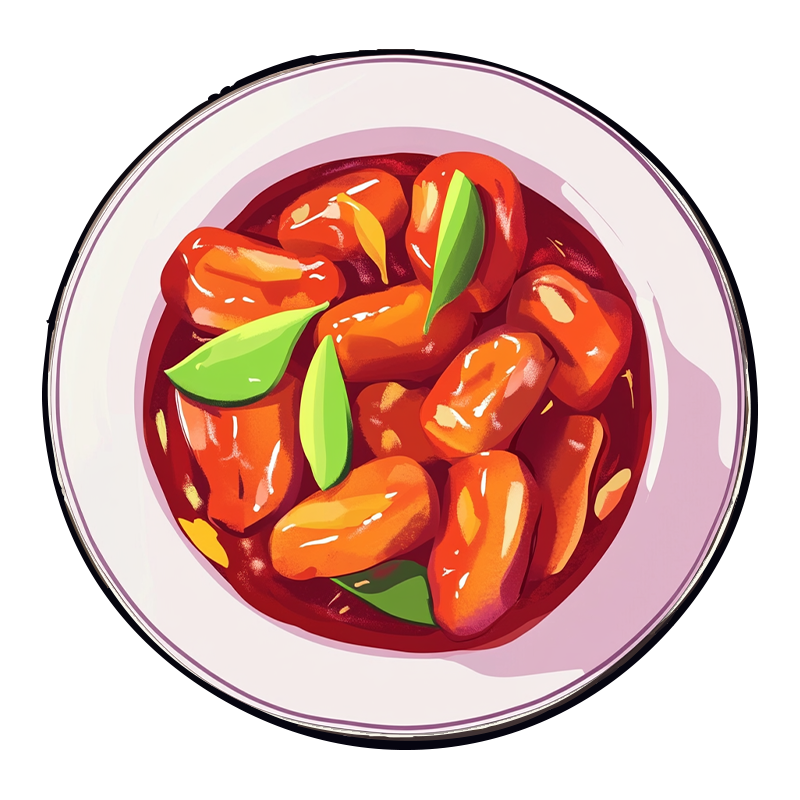 Gusta morbidi gnocchi di riso avvolti in una salsa coreana piccante e irresistibile, completati da una spolverata di sesamo per un tocco finale croccante ed equilibrato.